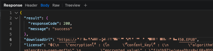 조금 특이한건, 서버에서 내려주는 epub 파일 자체는 키가 없어서 내가 복호화할 수 없는 license 파일이다. 대신 도서를 열 때 내 기기에 저장된 RSA 키 페어 인증서를 서버에 보내는데, 그 때 내 공개키로 암호화된 값을 가진 새 license 파일만 내려준다.