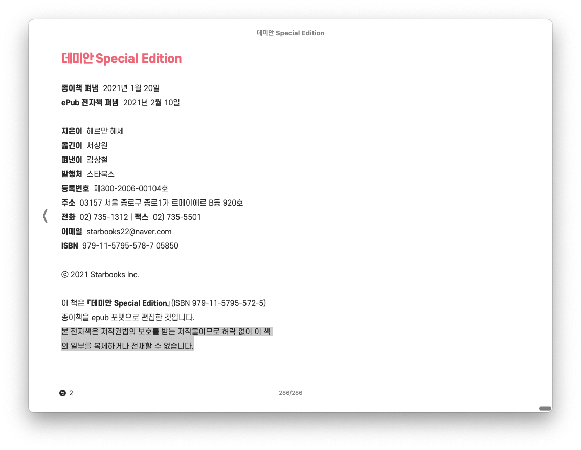 drm 해제가 완료되면 평범한 epub 파일이 된다. epub 포매을 지원하는 어떠한 앱(나의 경우엔 애플 도서 앱)으로도 볼 수 있다.
